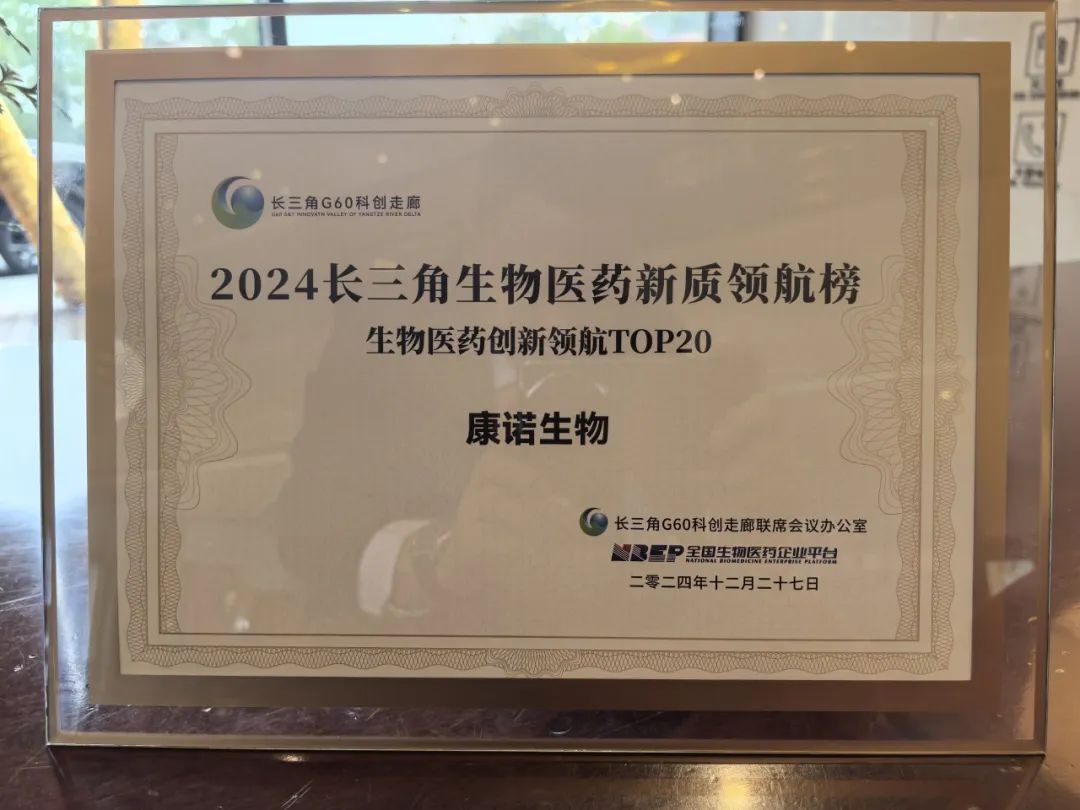 12月27日,長三角G60科創(chuàng)走廊創(chuàng)新研究中心與全國生物醫(yī)藥企業(yè)平臺、醫(yī)耘科技共同發(fā)起的長三角生物醫(yī)藥新質領航榜單正式揭曉,康諾生物憑借其在生物醫(yī)藥領域的卓越創(chuàng)新和顯著成就,成功躋身“長三角生物醫(yī)藥創(chuàng)新領航TOP20”榜單,這一榮譽標志著康諾生物在推動生物醫(yī)藥產業(yè)高質量發(fā)展中的杰出貢獻得到了廣泛認可。